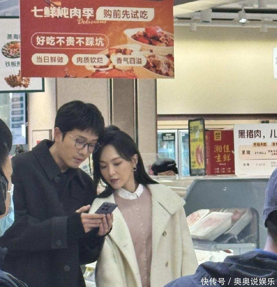 不是说她没人缘啊,只不过那天的氛围完全不见娱乐圈的浮夸劲儿。她身上是一件米色针织衫配着深色长裤,脚上还穿着尖头皮鞋,跟屏幕上那个精致闪耀的唐嫣根本就是两个世界的人。不过这正是《此刻的生活》取景拍摄嘛,得演一位蛮现实的职场妈妈,素颜是基本操作。不但如此,她旁边还站着彭冠英,两个人看起来倒像是隔壁家常夫妻,你一句我一句讨论着酱油、蔬菜、零食——这场戏就是实打实地还原咱们普通人买菜过日子的样子。